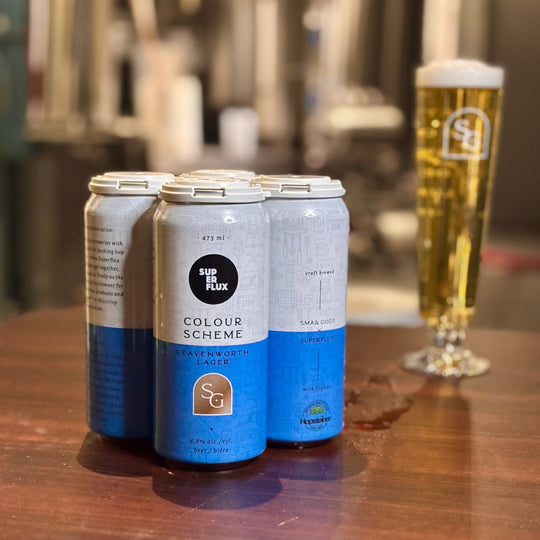 Two lager-loving breweries with a shared passion for pushing hop boundaries – when- Superflux– and Small Gods get together, innovation flows as freely as the beer. Our mutual excitement for exploring new hop products and techniques led to this crisp collaboration.