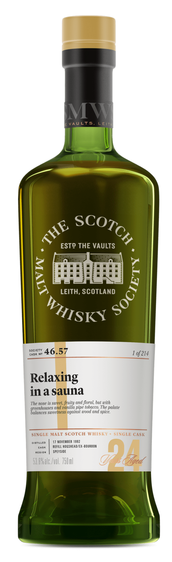 An interesting nose! Sweet, fruity and floral, with custard creams and lemon sponge-cake, but also something almost earthy, like greenhouses, vanilla pipe tobacco or woollen socks drying by the fire. The palate combined separate strands sweetness (tinned peaches, wine gums), wood (balsa, cedar, wood-sap, eucalyptus) and spice (cinnamon, nutmeg, clove, peppercorns).