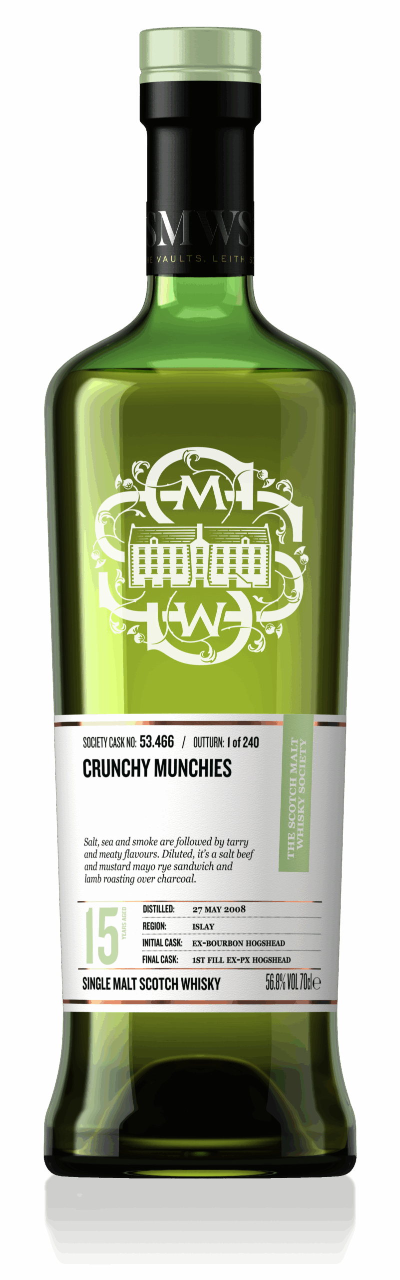 The first impression was that of salt, sea and light smoke, like opening a jar of olives on a Greek island in summer and adding them to a smoked mackerel and pickled walnut salad. On the palate we returned from Greece to a well-known Scottish whisky island with tarry and meaty flavours as we enjoyed roasted octopus with honeyed soy sauce and seaweed.